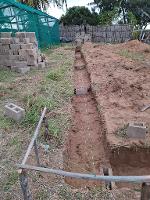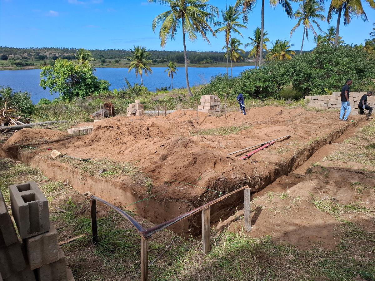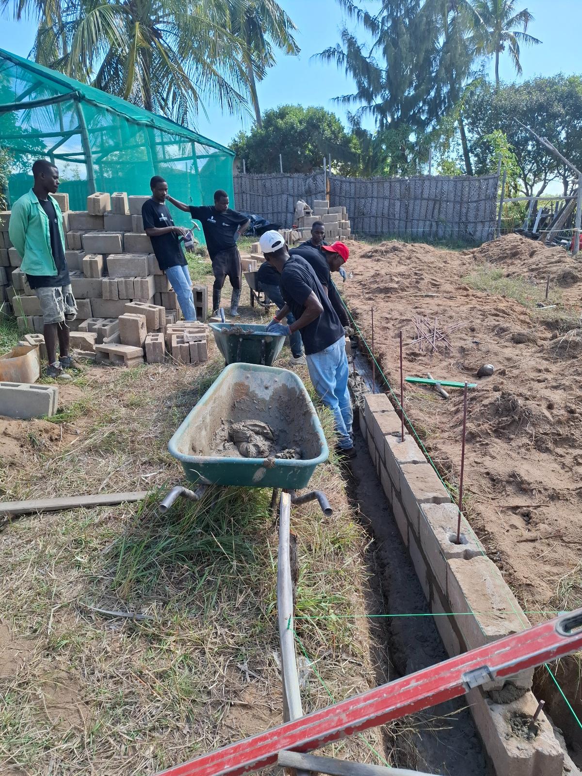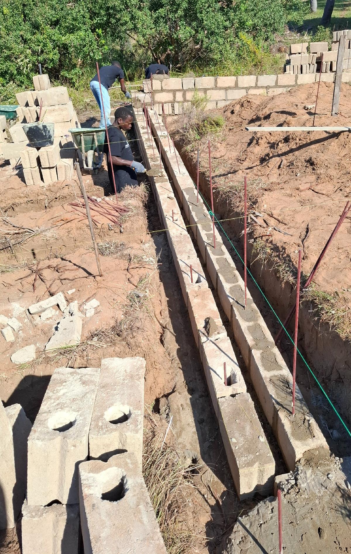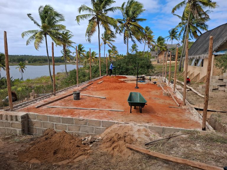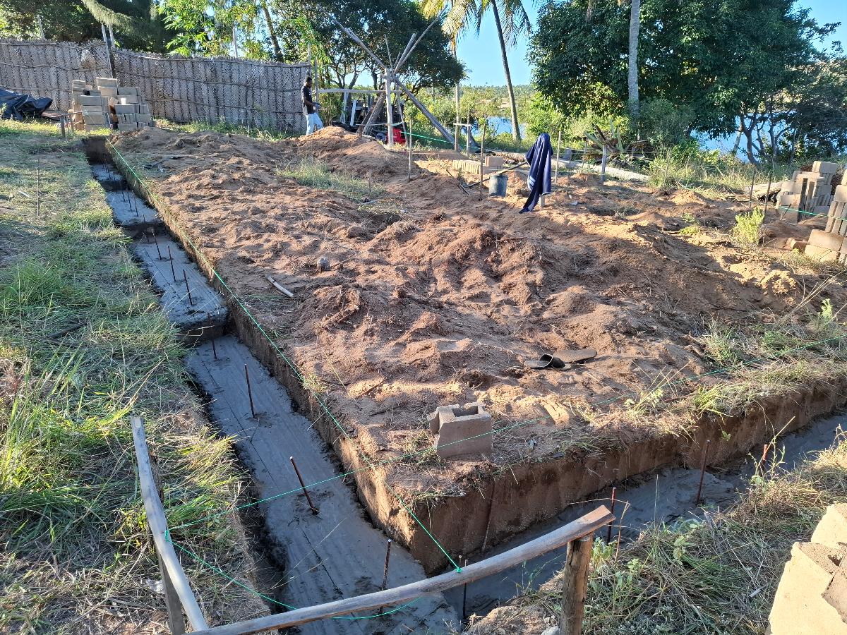 På grunn av den sandholdige grunnen, gikk gravingen av fundamentet raskt og effektivt. Som tømrer av den europeiske skolen, var Radeks største bekymring hvordan bygget skulle stå stødig på sandgrunn. Dette viste deg derimot ikke å være en bekymring i Mosambik. Ved å grave en dybde tilsvarende to mursteiner ned i bakken var fundamentet å anse som tilstrekkelig. En av fordelene med å bygge hus i Mosambik er at man slipper å ta hensyn til frostfri dybde...