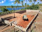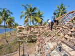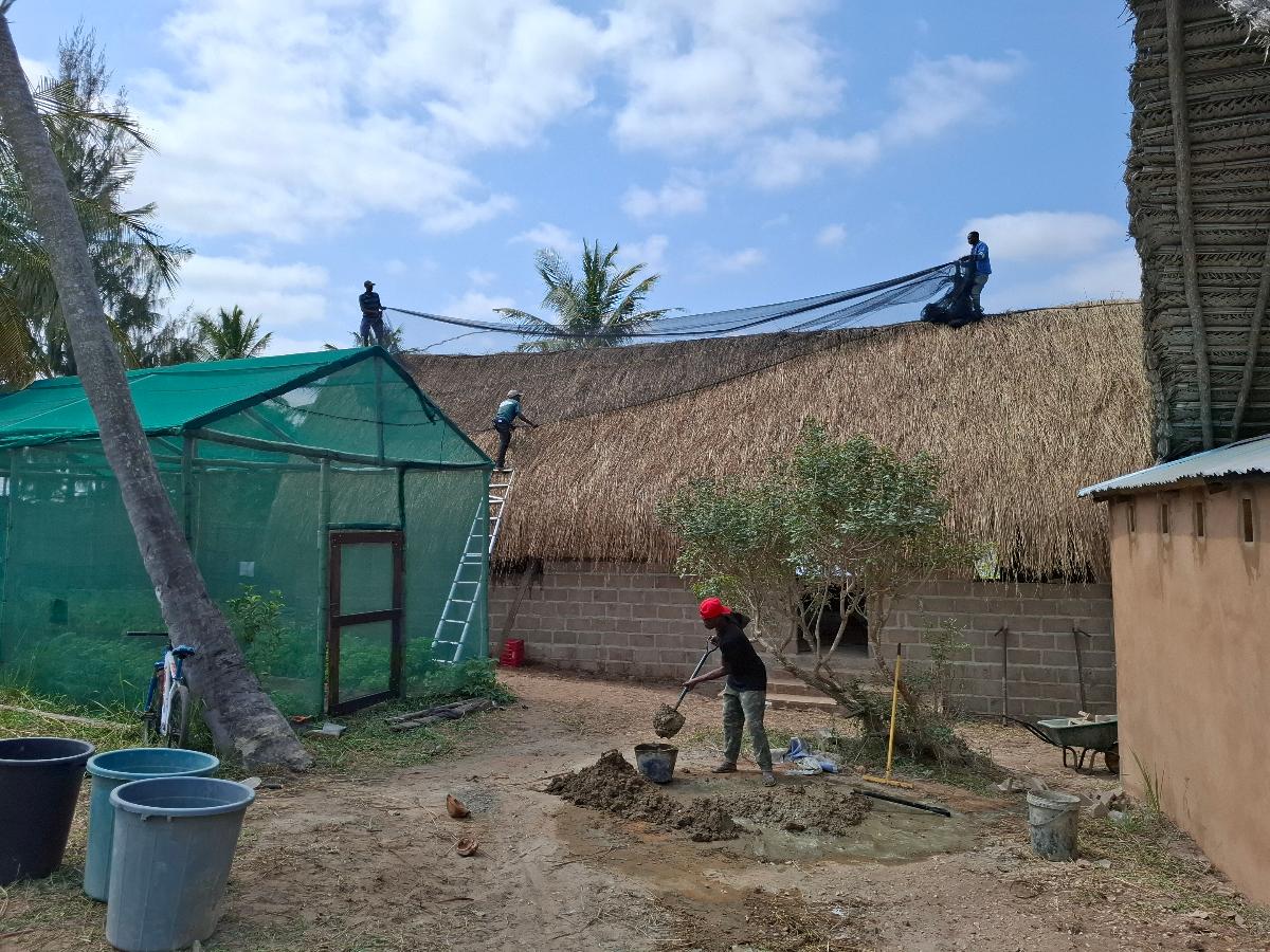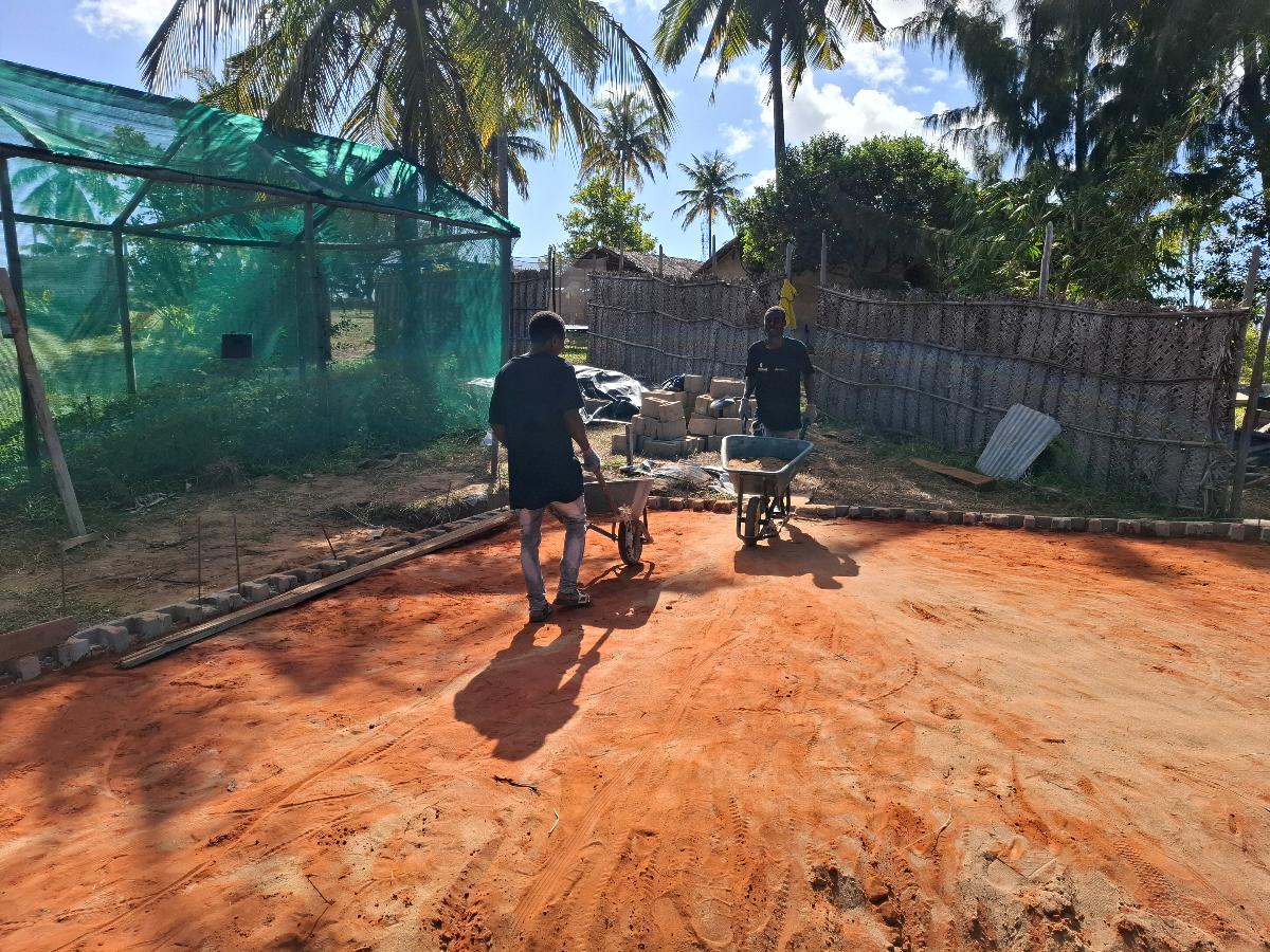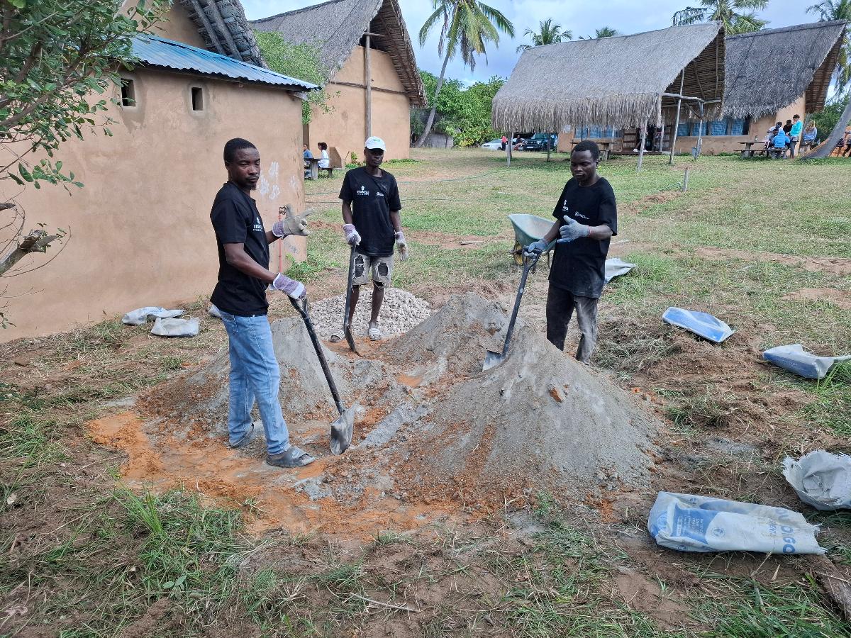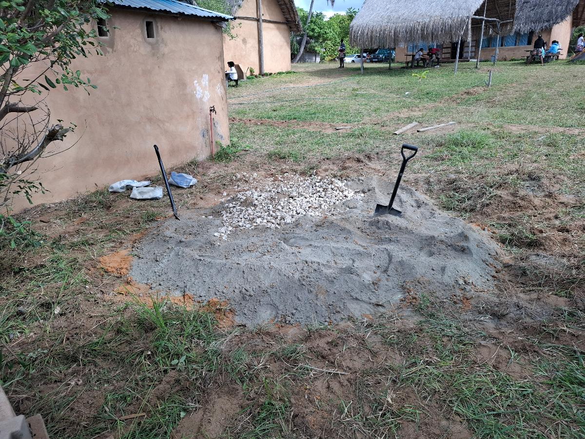 Da betongdekket skulle støpes, ble hver blanding laget med 5 sekker sement á 50 kg, sand, vann og stein – totalt rundt 500 kg per parti. Det ble laget 8 slike blandinger kun for dekket, og alt ble gjort manuelt. Det ble vurdert å kjøpe en betongblander, men på grunn av den salte luften i området ville den ikke overlevd lagring. Hvert parti ble derfor blandet for hånd, på bakken. Ikke den mest effektive løsningen, men ved å benytte manuell arbeidskraft gav det flere mennesker inntekt til å forsørge familiene sine.