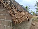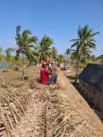 2) Deretter legges Makuti, flettede palmeblader. Disse bindes fast til lakka lakka i tre linjer, og bidrar med ekstra tetthet og styrke.