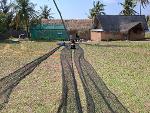 1) Det første laget i konstruksjonen kalles Lakka lakka, som er korte stumper av palmeblader spikret i parallelle rader.